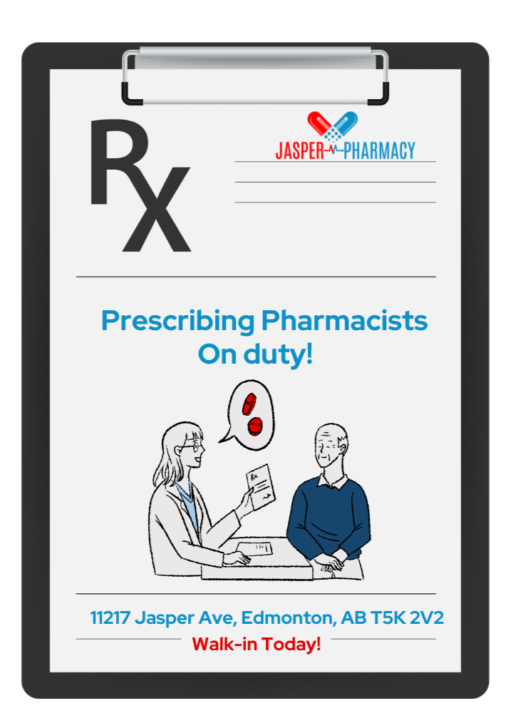 Enjoy hassle-free health management with Jasper Pharmacy's free prescription delivery service. Save time and skip the lines with our fast and reliable delivery right to your doorstep, at no additional cost for Edmonton and surrounding area.- Contact us to confirm delivery times or arrange recurring deliveries.- For urgent deliveries, please contact us directly.
