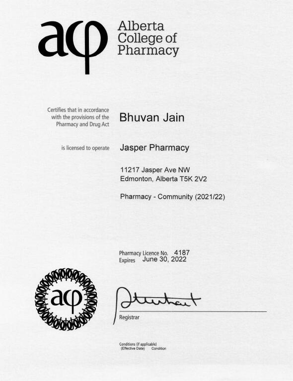 the licensee.If you are still concerned, you may contact the Alberta College of Pharmacy toll free at 1-877-227-3838 or by visiting the college website abpharmacy.ca